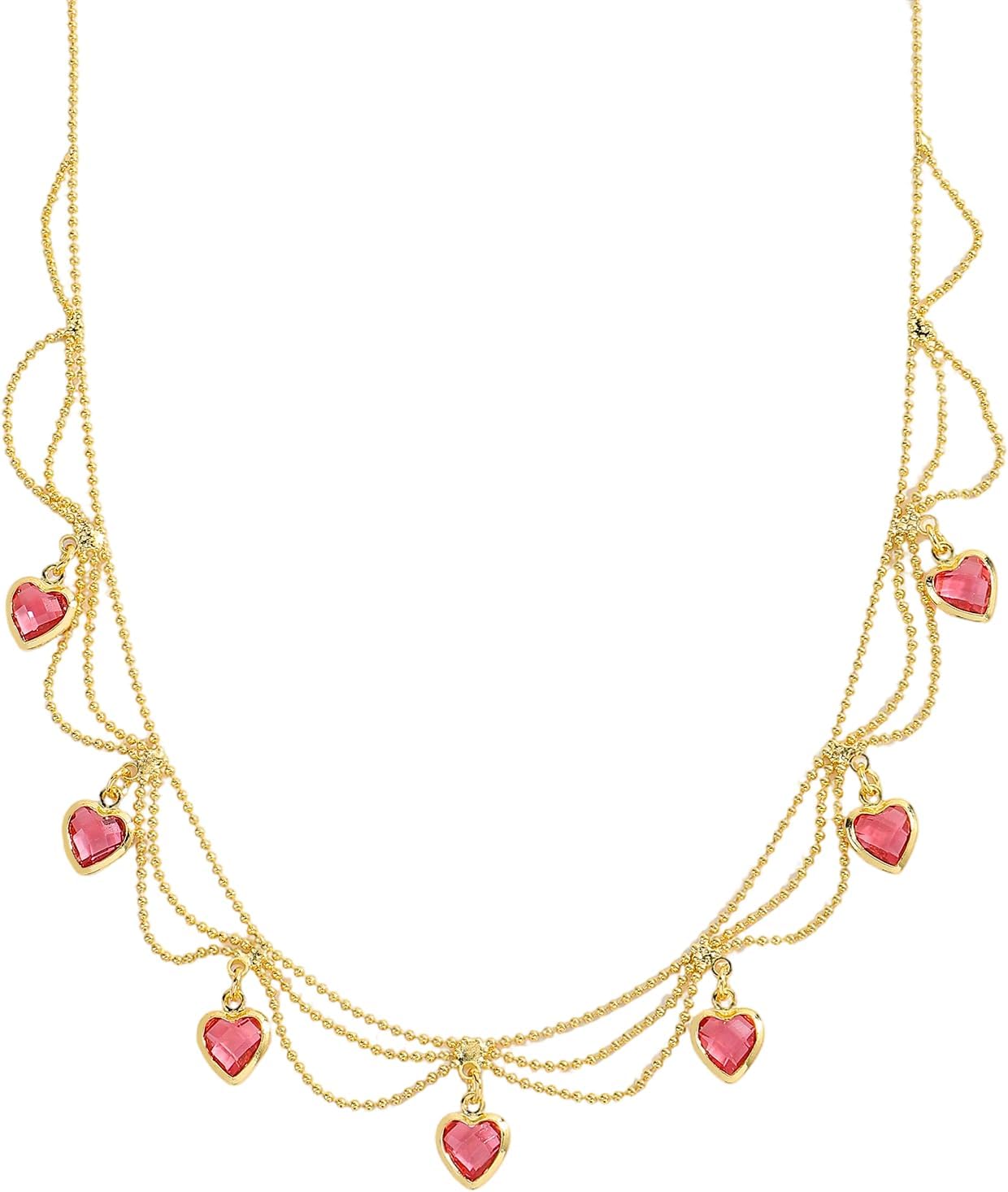 14K Gold Plated Copper Layered Pink Heart Necklace for Women, Dainty Cubic Zircon Rhinestone Pink Hearts Pendant Necklace Trendy Fashion Jewelry for Daily Wear Party Gifts