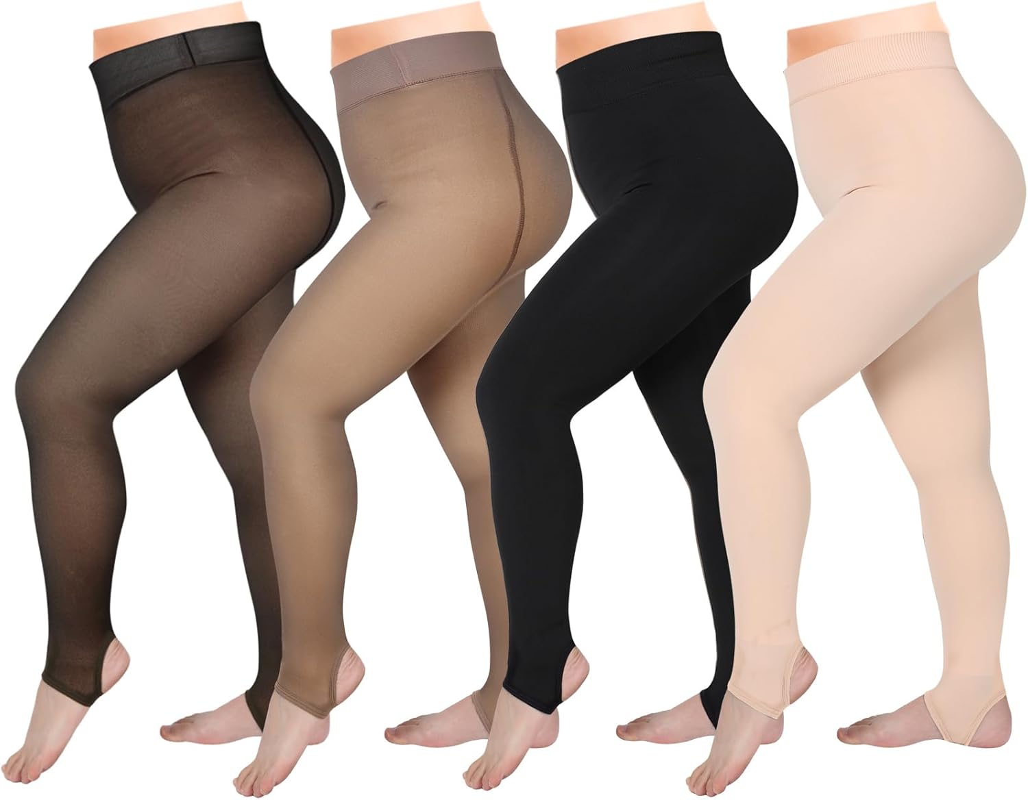 Foaincore 4 Pairs Plus Size Fleece Lined Tights Women Fleece Lined Leggings Translucent Winter Sheer Tights Warm Pantyhose