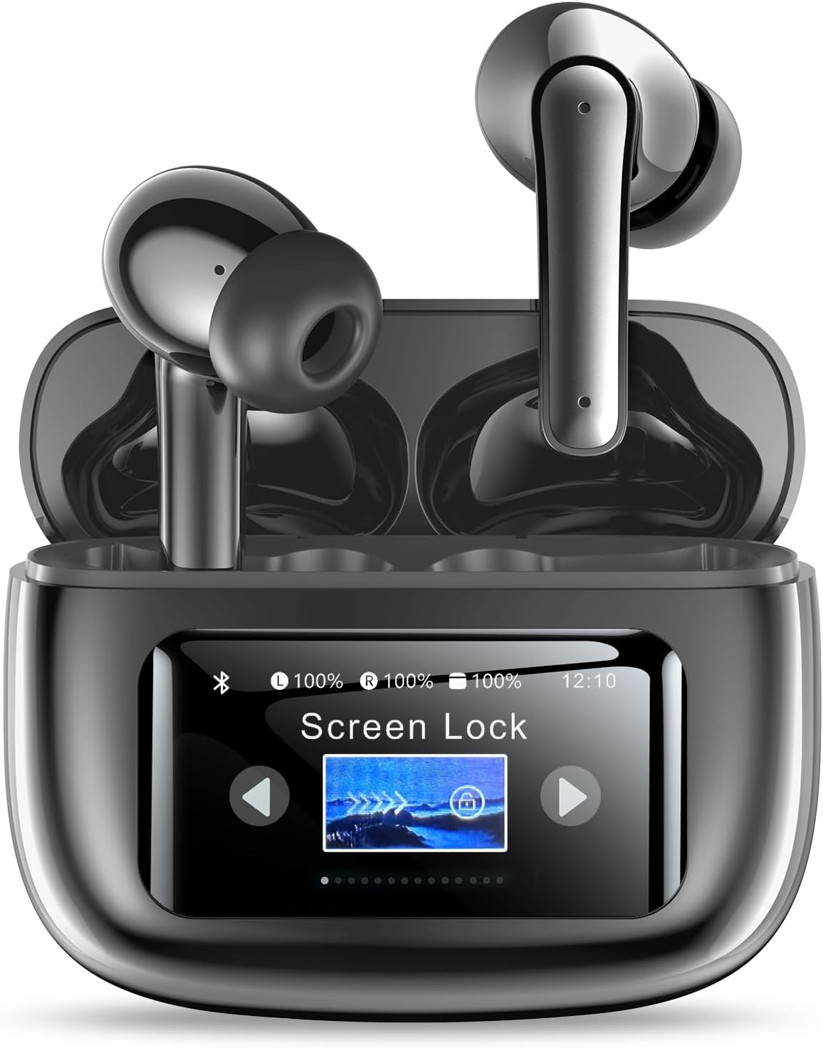 - Smart Wireless Ear Buds with Touchscreen Charging Case | Your Pocket-Sized Command Center: Take full control without touching your phone. Featuring a responsive touchscreen on the charging case, you can easily manage music, locate earbuds, skip tracks, control your camera, and more—all from the case itself. It’s not just storage; it’s your smart control hub on the go.