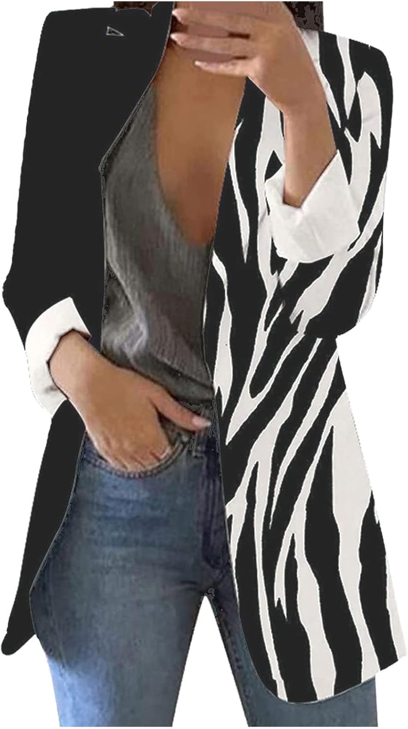 ZEFOTIM Blazers for Women Winter Plus Size Long Floral/Striped Blazer Work Lightweight Fitted Coat