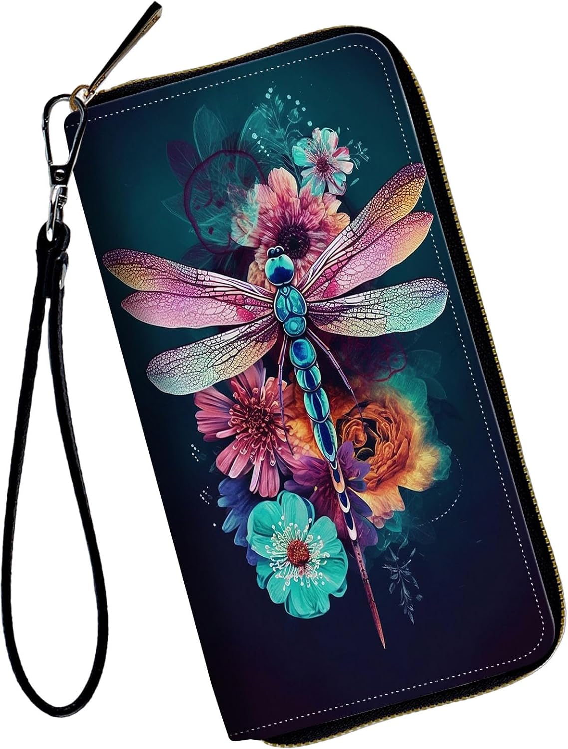 Women Wallets,Large Capacity Clutch Purse for Women Ladie Men Wallet Clearance Credit Card Holder PU Leather Handbag Clutch Purse-Beautiful Dragonfly