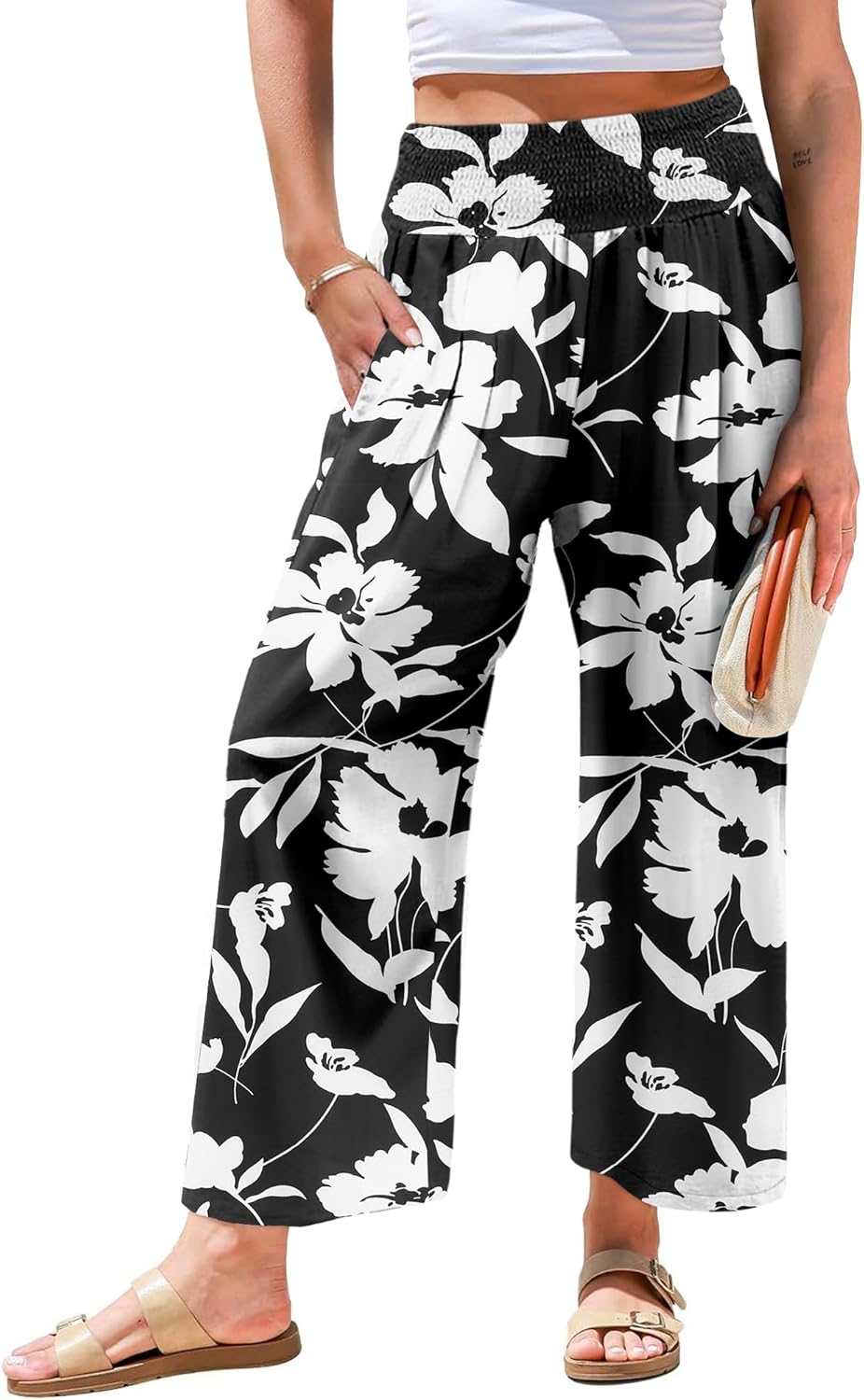 Angerella Women's Wide Leg Pants Casual High Waisted Palazzo Pants Summer Flowy Beach Lounge Trousers with Pockets