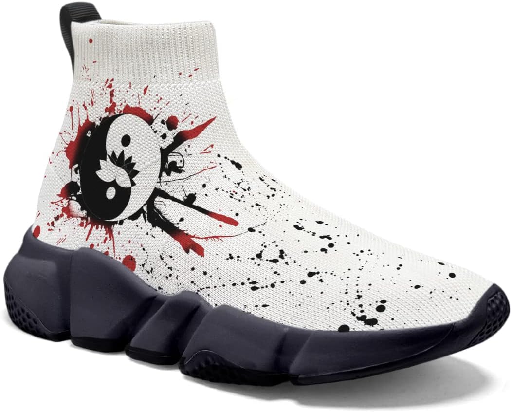 Mens Graffiti Sneakers Tai Chi Painted Shoes Womens Casual Socks Shoes Size 7-15