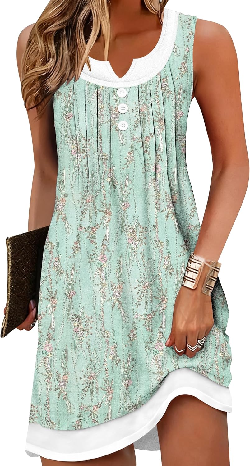 ETCYY Beach Dresses for Women 2026 Vacation Swimsuit Coverup School Teacher Summer Dress Button Down Sleeveless Boho Sundress