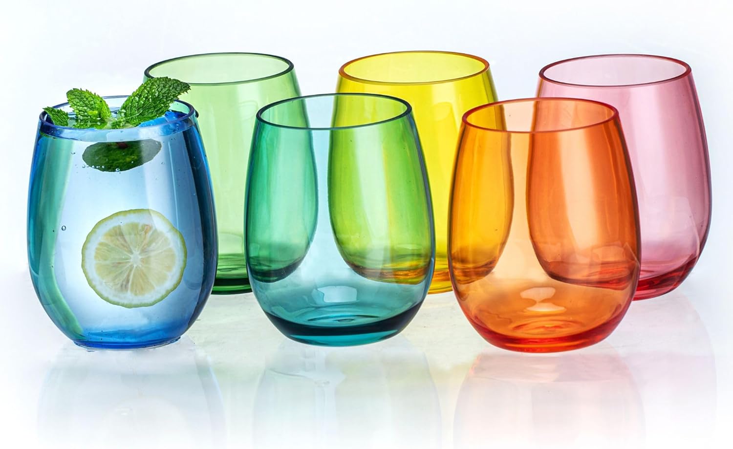 18oz Colorful Stemless Wines Cups, Shatter-Proof Acrylic Glasses Drinkware, Reusable Plastic Bar Glasses, BPA-Free, Dishwasher-Safe