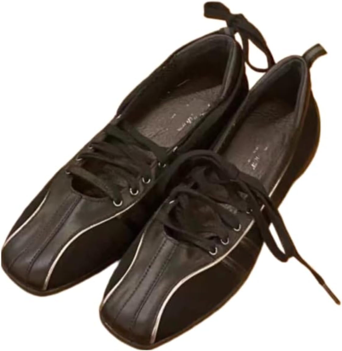 Women's Square Toe Ballet Flats Lace Up Leather Casual Shoes Platform Sole Sneakers