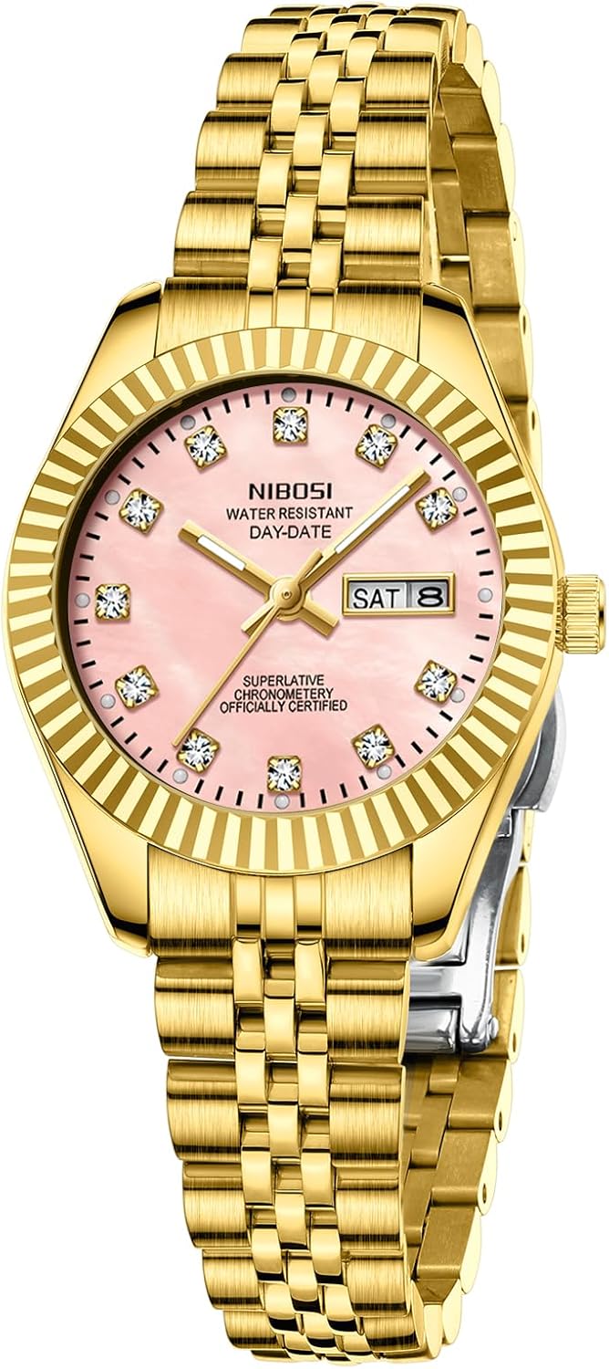 NIBOSI Watches for Women Analog Quartz Stainless Steel Dial with Day Date Luminous Waterproof Dainty Classic Luxury Diamond Elegant Dress Women's Watch for Small Wrists