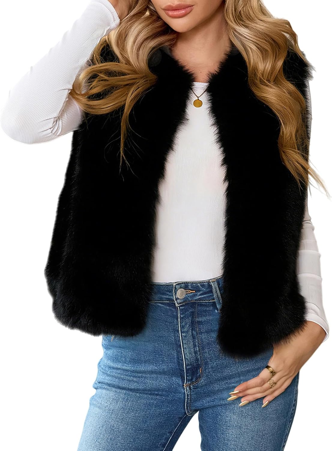 WOWULOVELY Women Faux Fur Vest Sleeveless Fuzzy Jacket Furry Open Front Cardigan Top Fluffy Coats Winter Vest Outerwear
