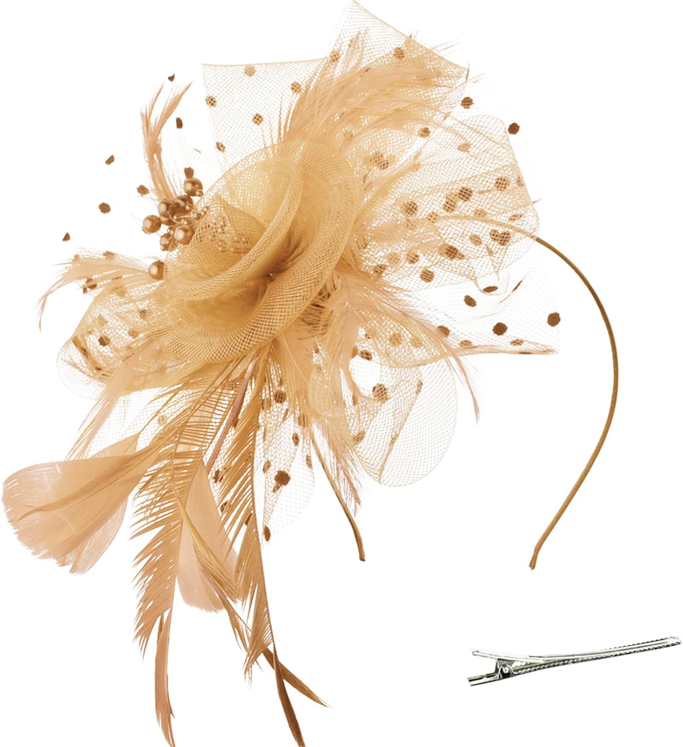 DRESHOW Fascinators Hat Flower Mesh Ribbons Feathers on a Headband and a Clip Tea Party Headwear for Girls and Women