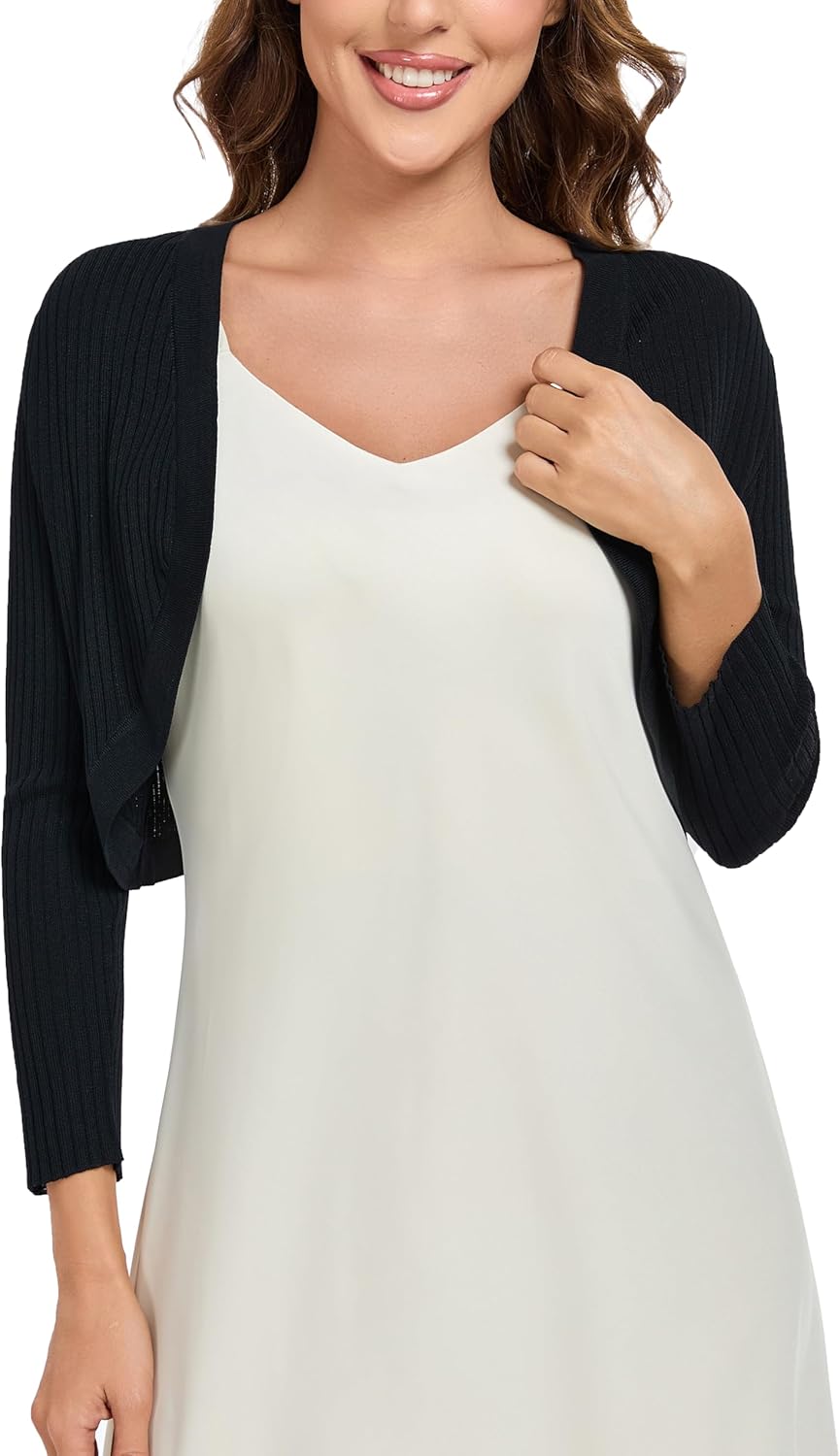Women’s Bolero Shrug Elegant 3/4 Sleeves Open Front Cropped Cardigan Top for Dresses Work Business