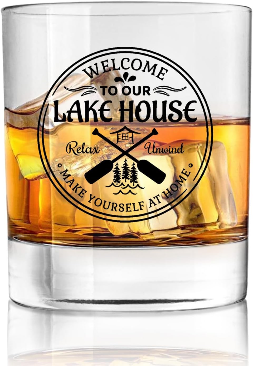 Lake House Whiskey Glasses 10 oz, Lake House Decor and Gifts, Welcome Home Gifts Old Fashioned Rocks Glasses Cup for Women Men Drinking Cocktail Scotch Bourbon Liquor