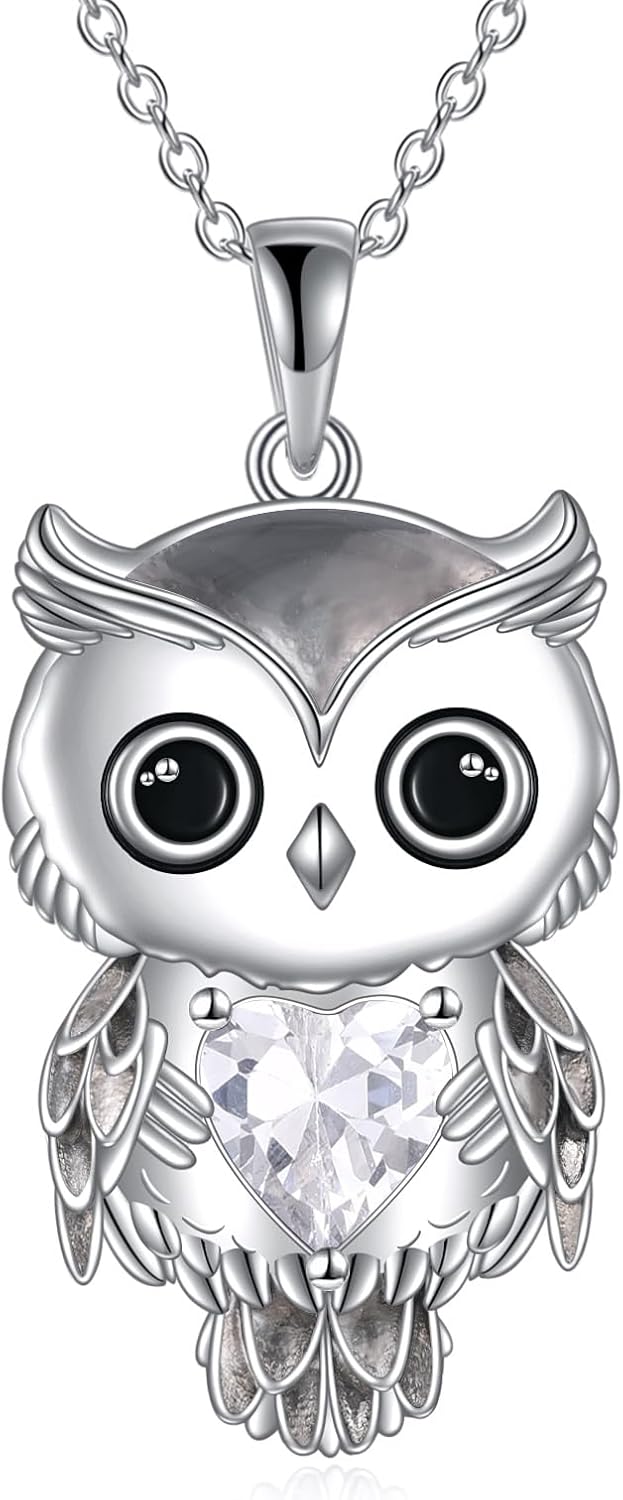 Owl Necklace Jewelry Gifts for Women Sterling Silver Birthstone Owl Pendant Necklace Christmas Jewelry for Women