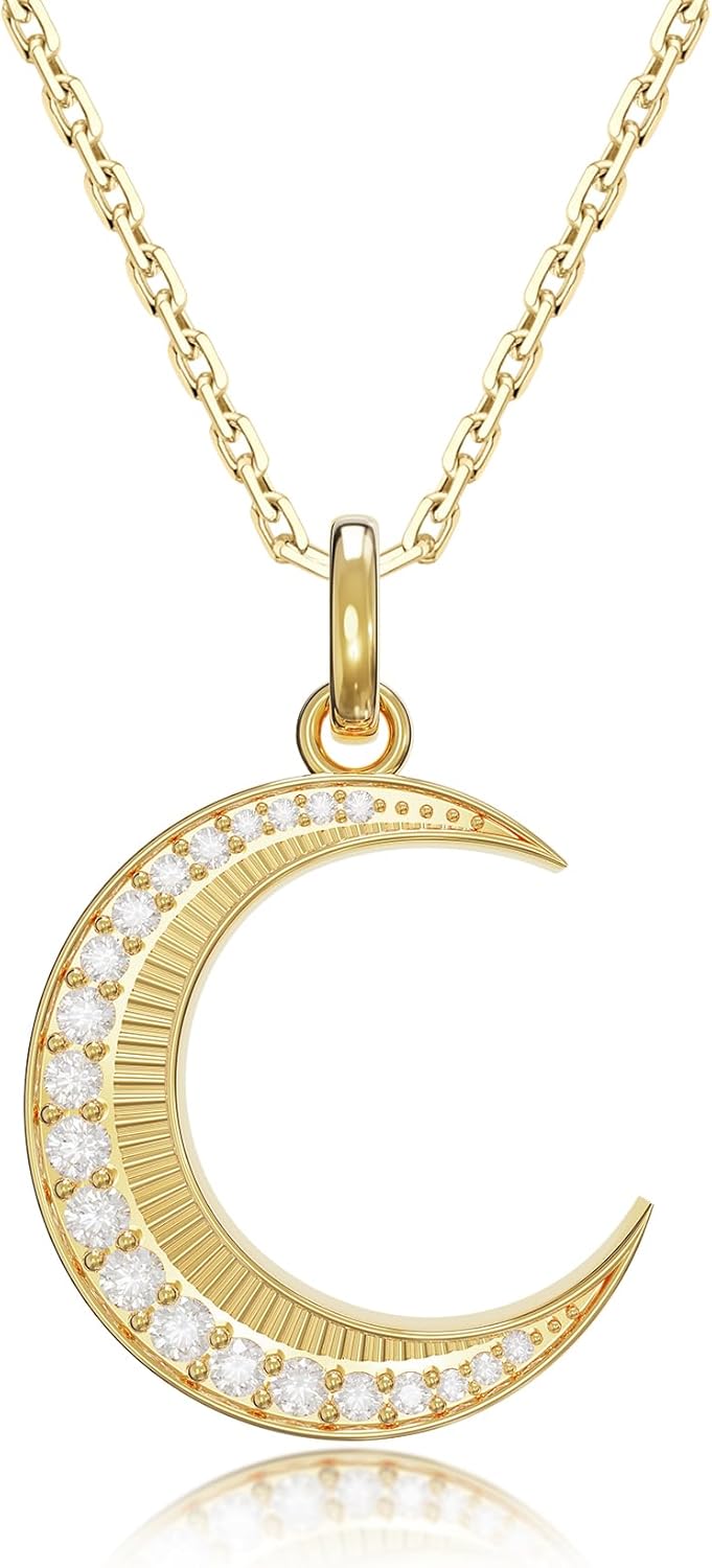 Moon Necklace for Women, Sterling Silver Crescent Moon / Star Pendant with 16K Gold Plated and 5A CZ, Hypoallergenic Jewelry Christmas Gift for Women on Birthday Anniversary Christmas for Wife Girlfriend Her