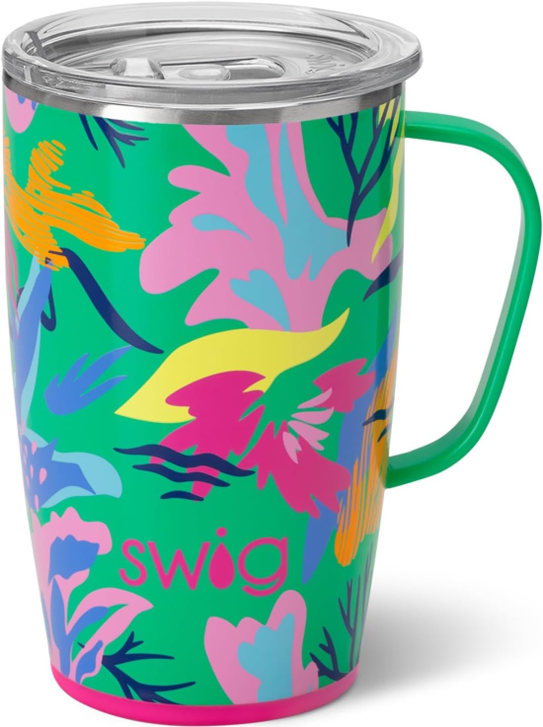 Swig Life 18oz Travel Mug, Insulated Tumbler with Handle and Lid, Cup Holder Friendly, Dishwasher Safe, Stainless Steel, Travel Coffee Cup (Paradise)