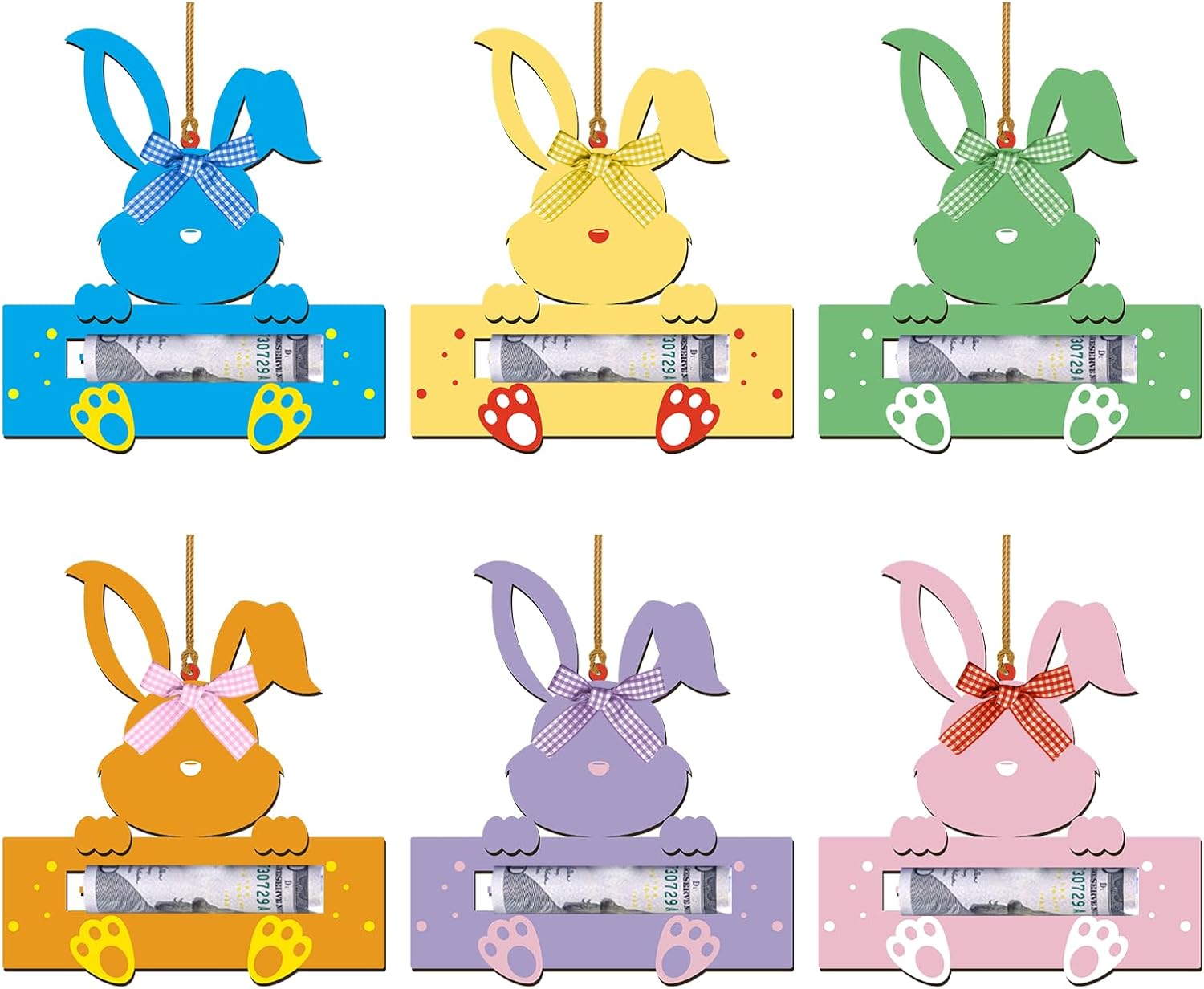 - Package Includes: The set contains 6 Easter bunny money holders in vibrant colors. Each wooden cash holder features a festive rabbit design, offering a charming and fun way to present monetary gifts during the Easter holiday