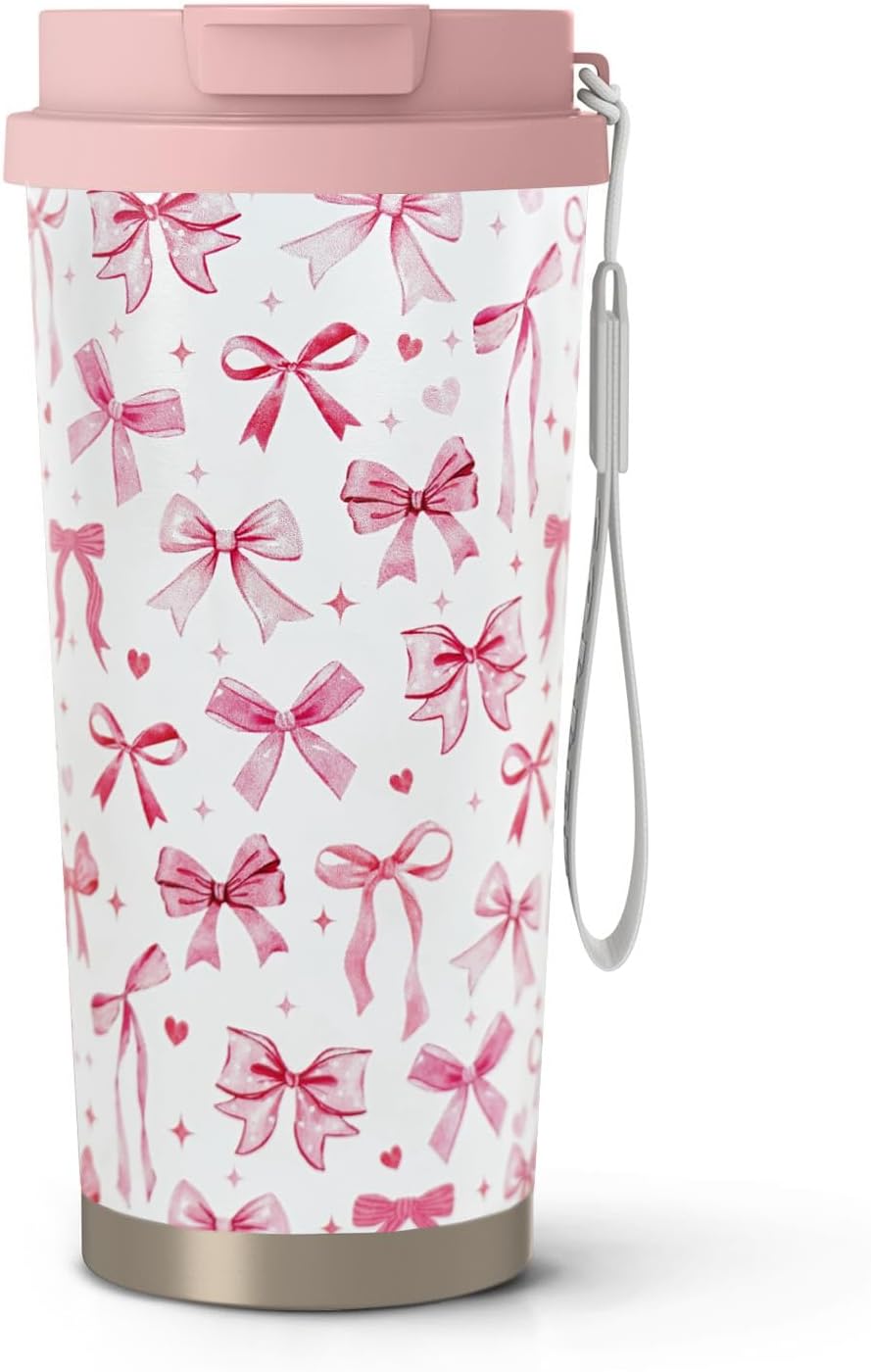 - Cute Pink Bow Gifts: This bow spill proof travel mug with lid,bow tumbler,bow decor drinking glass, kawaii bow coffee mug,bow insulated cup,bow water bottle,bow cup,bow mug,cute coffee mugs,you can send the cute bow travel coffee cup as a gift for girl, women or those who likes bow
