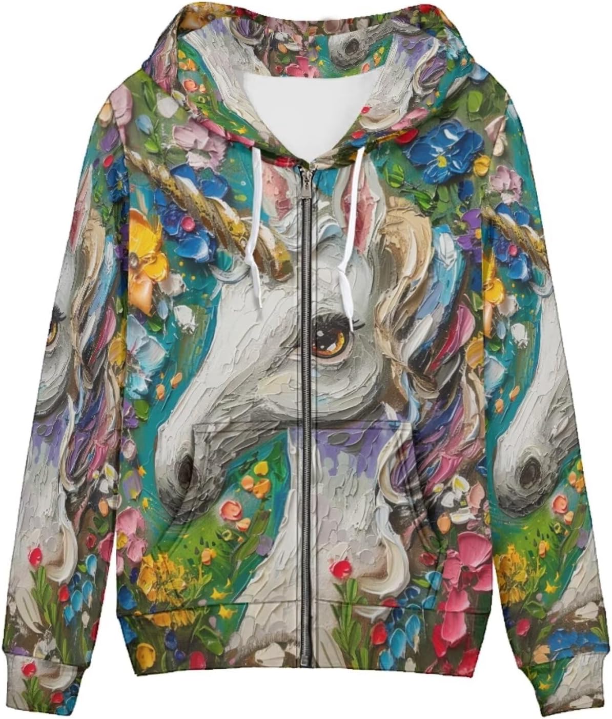 PinUp Angel Zip Up Hoodies Women Casual Long Sleeve Sweatshirts Animal Oil Painting Graphic Autumn Hoody with Pockets