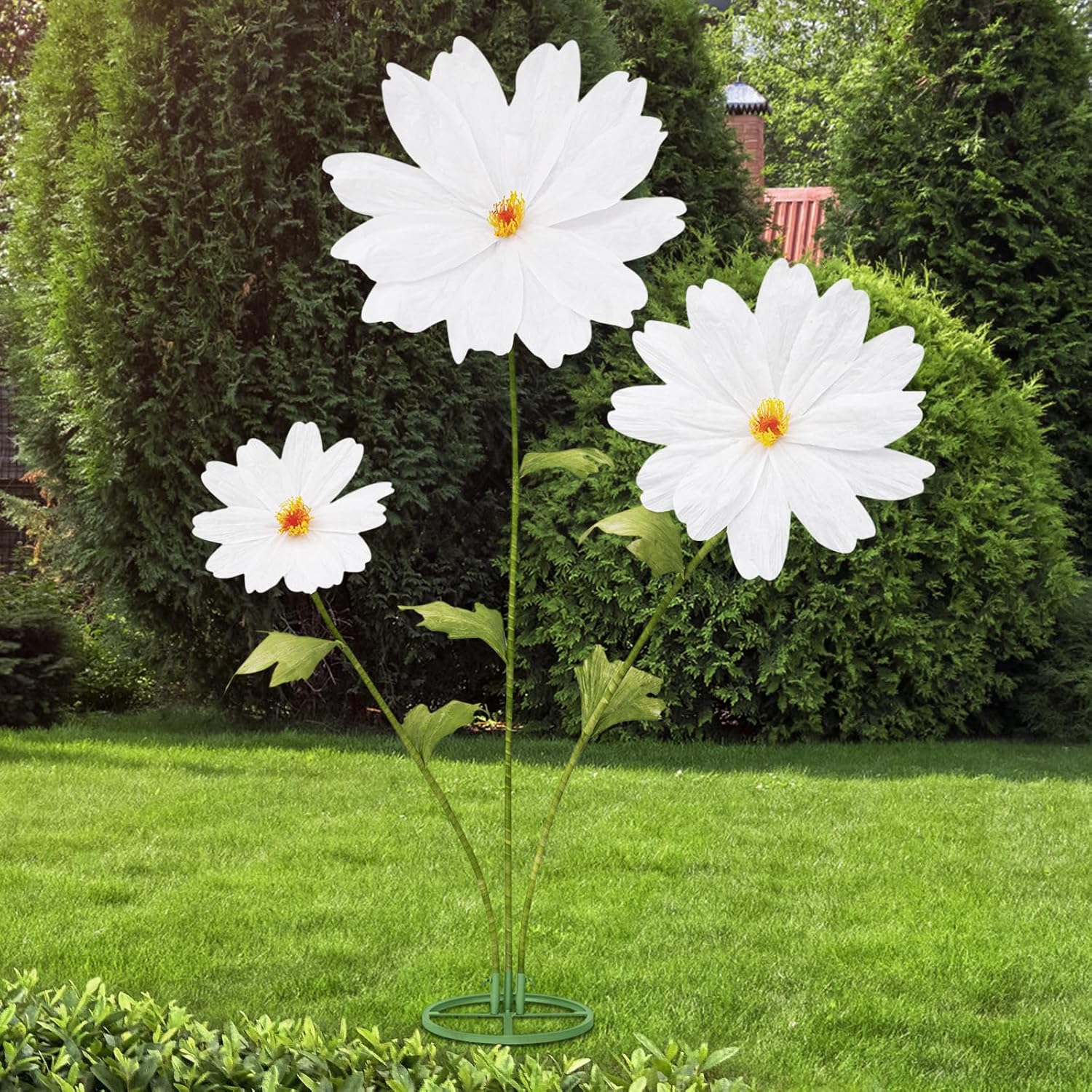 Giant Daisy Paper Flower for Decoration: 5.6 FT Large Artificial Flowers with Stand for Home Decor - 3 PCS Flowers with Adjustable Stem for Garden - Wedding Baby Birthday Party or Bridal Shower