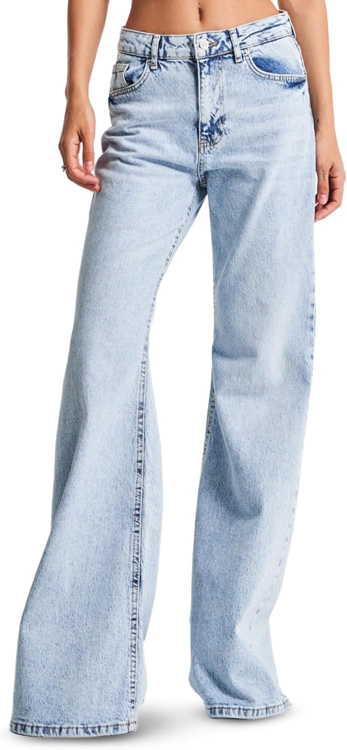 IT'S BASIC Wide Leg Jeans for Women High Waisted, Relaxed fit, Flared Trendy Womens Jeans Stretchy Denim Pants, Stonewashed