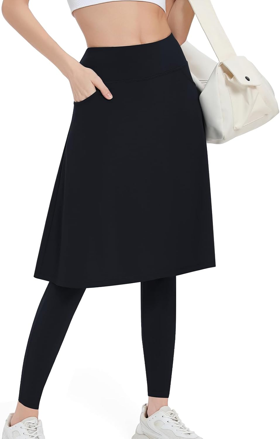 Women Athletic Knee Length Skirts with Leggings,Yoga Skorts Leggings with Arc-Shaped Pockets&Women Skirted Capris Skorts