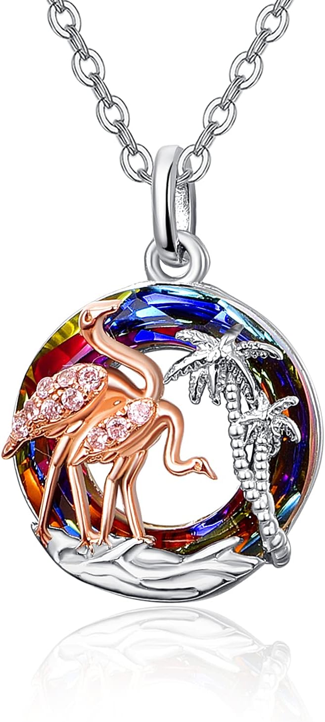 TANGPOET Animal Necklaces for Women Mother 925 Sterling Silver Purple Crystal Pendant Necklaces Jewelry Gifts for Birthday Christmas Mothers Day with 18"+2" Chain