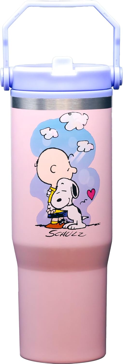 Spoontiques Peanuts 30oz Stainless Steel Water Bottle - 10" Tall, Twist Off Lid & Carrying Handle - Stainless Steel Outer Wall & Acrylic Inner Wall