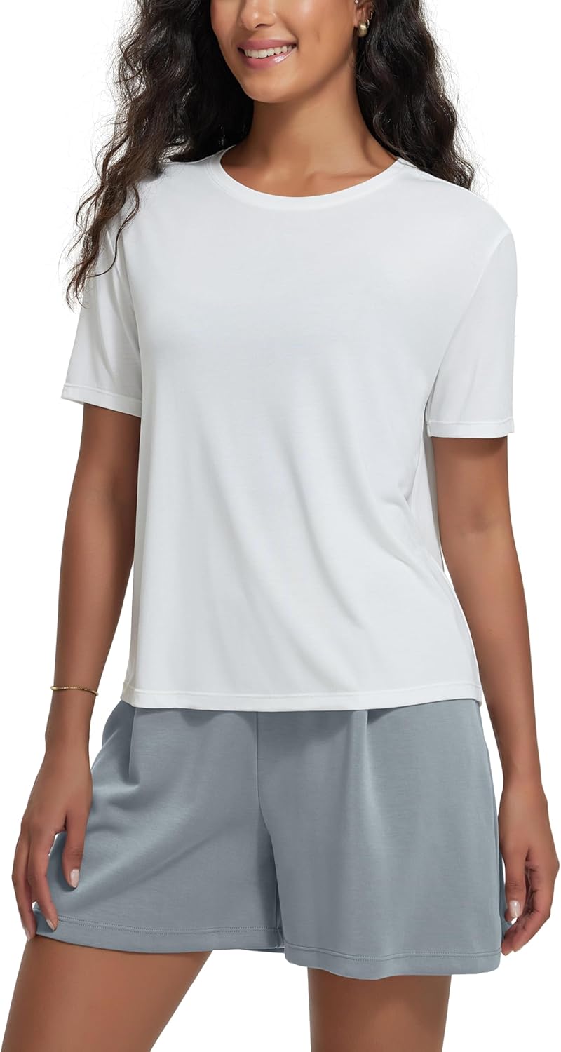 ODODOS Modal Soft Short Sleeve Shirts for Women Crew Neck Yoga Tee Casual Workout Tops