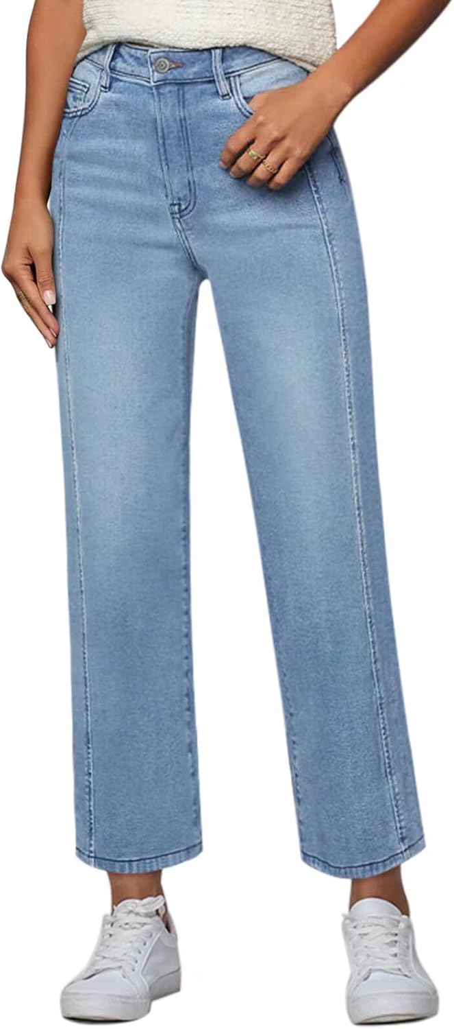 Womens Wide Leg Jeans High Waisted Stretchy Front Seams Ankle Length Straight Leg Jeans for Women
