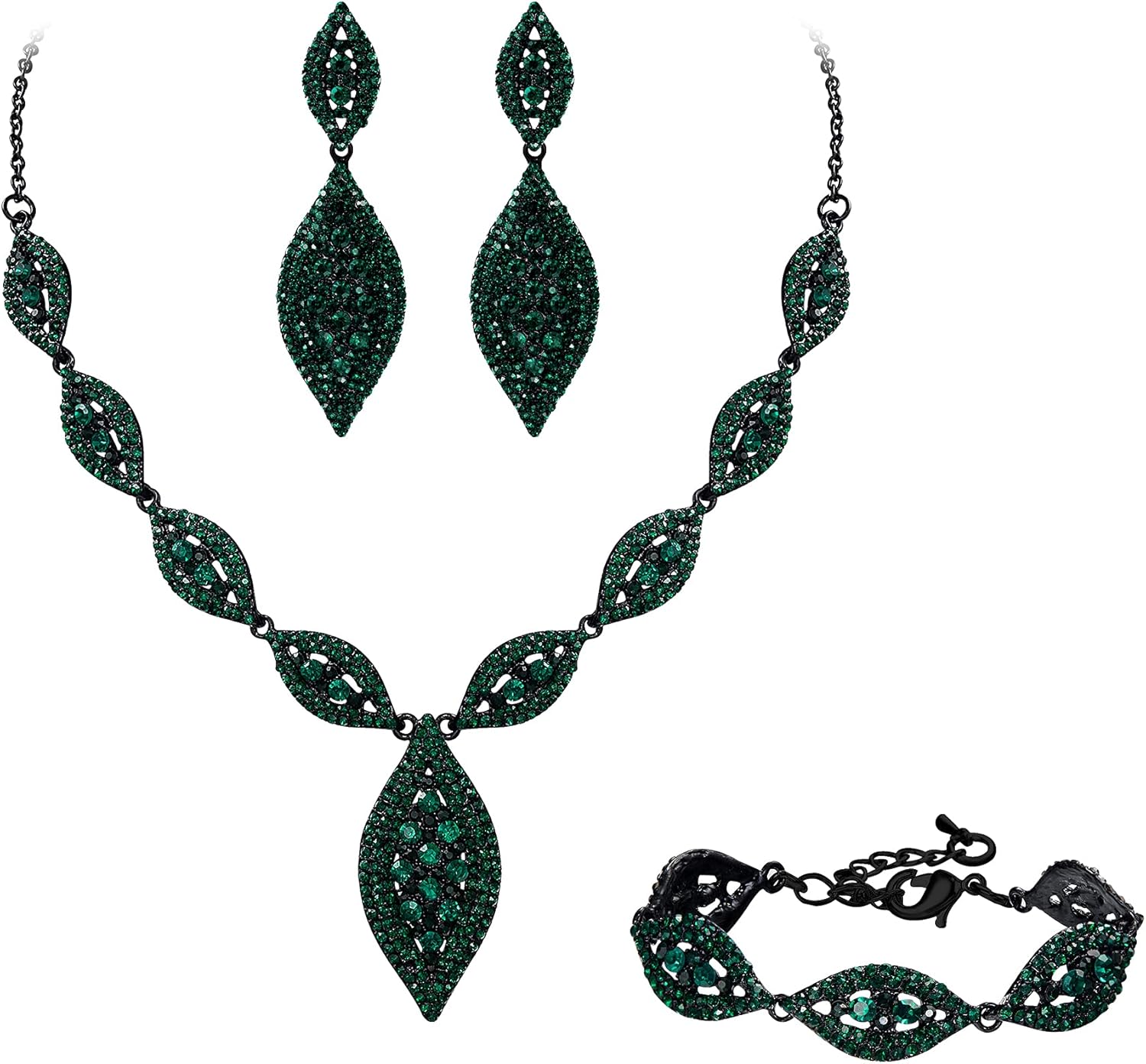 Flyonce Wedding Jewelry Set Rhinestone Crystal Bridal Leaf Necklace Drop Dangle Chandelier Earrings Sets for Women