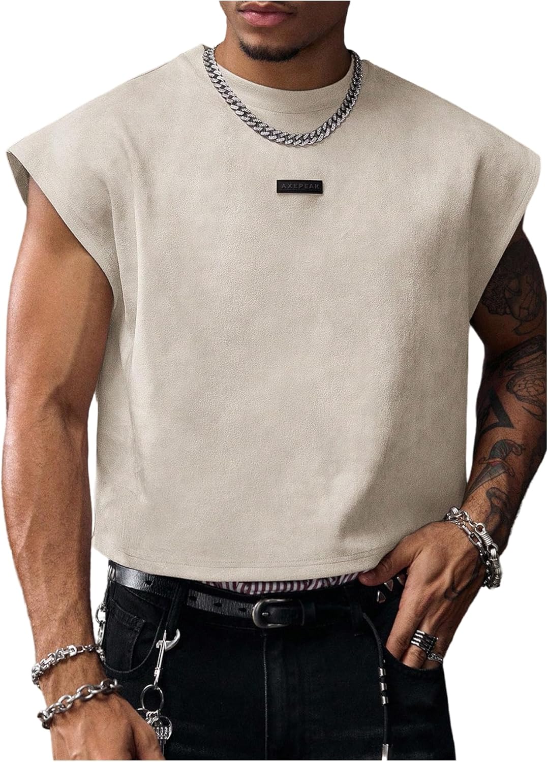 SHENHE Men's Letter Embossed Cropped Tank Top Y2k Sleeveless Crewneck Street Shirts