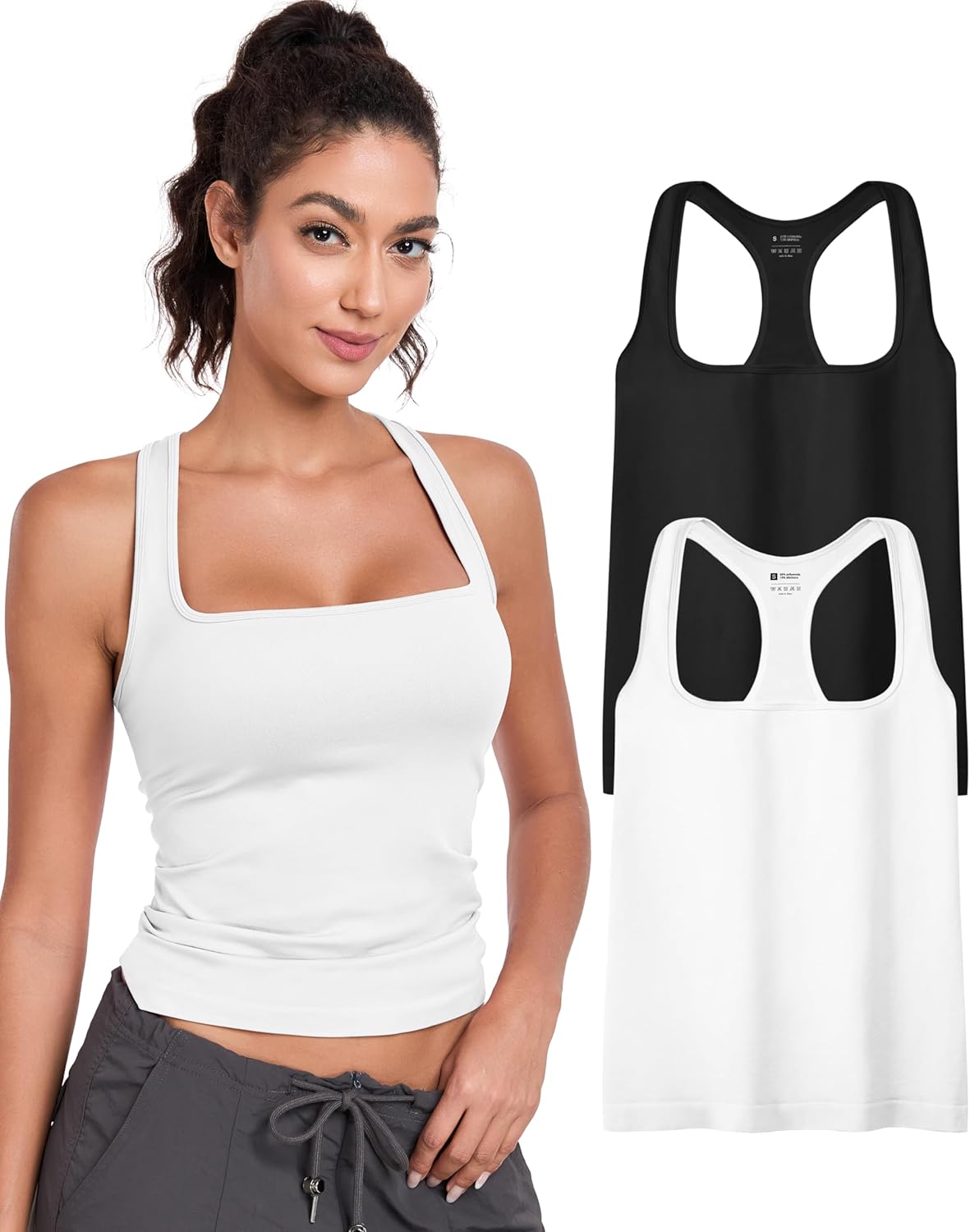 OLCHEE Womens 2PK High Neck Tank Tops Workout Long Seamless Trendy Basic Shirts Going Out Slim Fit 2025