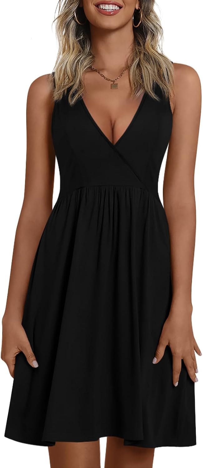 CATHY 2026 Womens Dress Sexy Sleeveless Summer Dresses V Neck Casual Wrap Sundress with Pockets S-2XL
