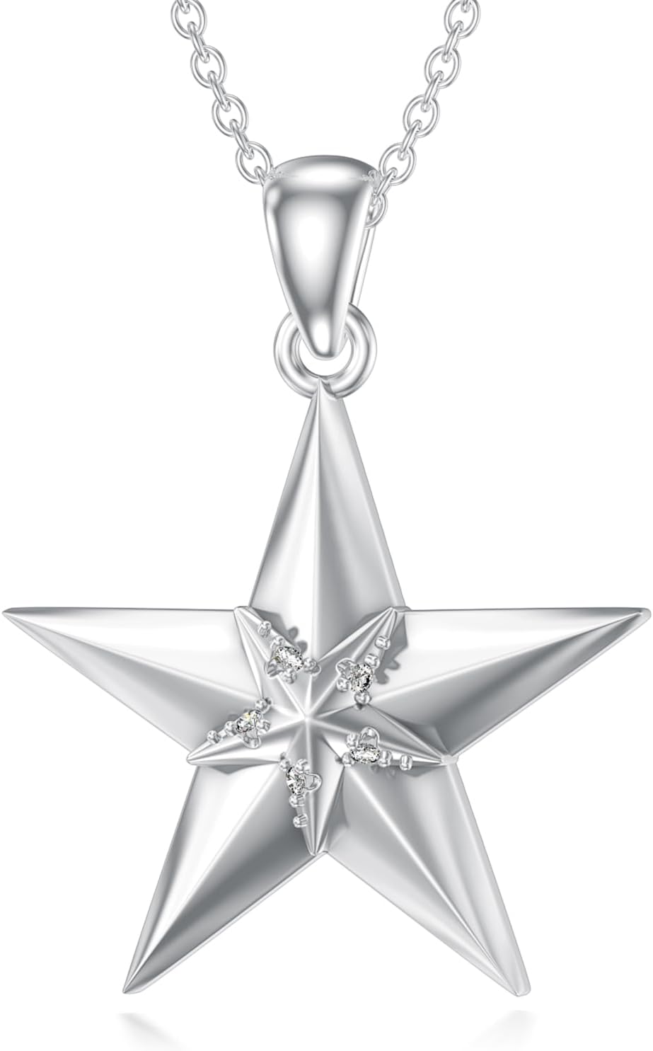 Diamond Star Necklace for Women 925 Sterling Silver Pentagram Necklace With Lab Grown Diamond Gifts for Birthday Christmas Day