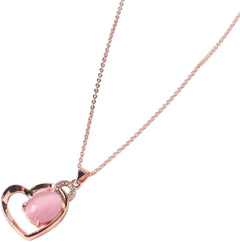Sterling Silver Heart Necklace for Women, Rose Gold and Silver Jewelry with Natural Rose Quartz, Heart Shaped Pendant, Stylish Crystal Jewelry for Women and Girls