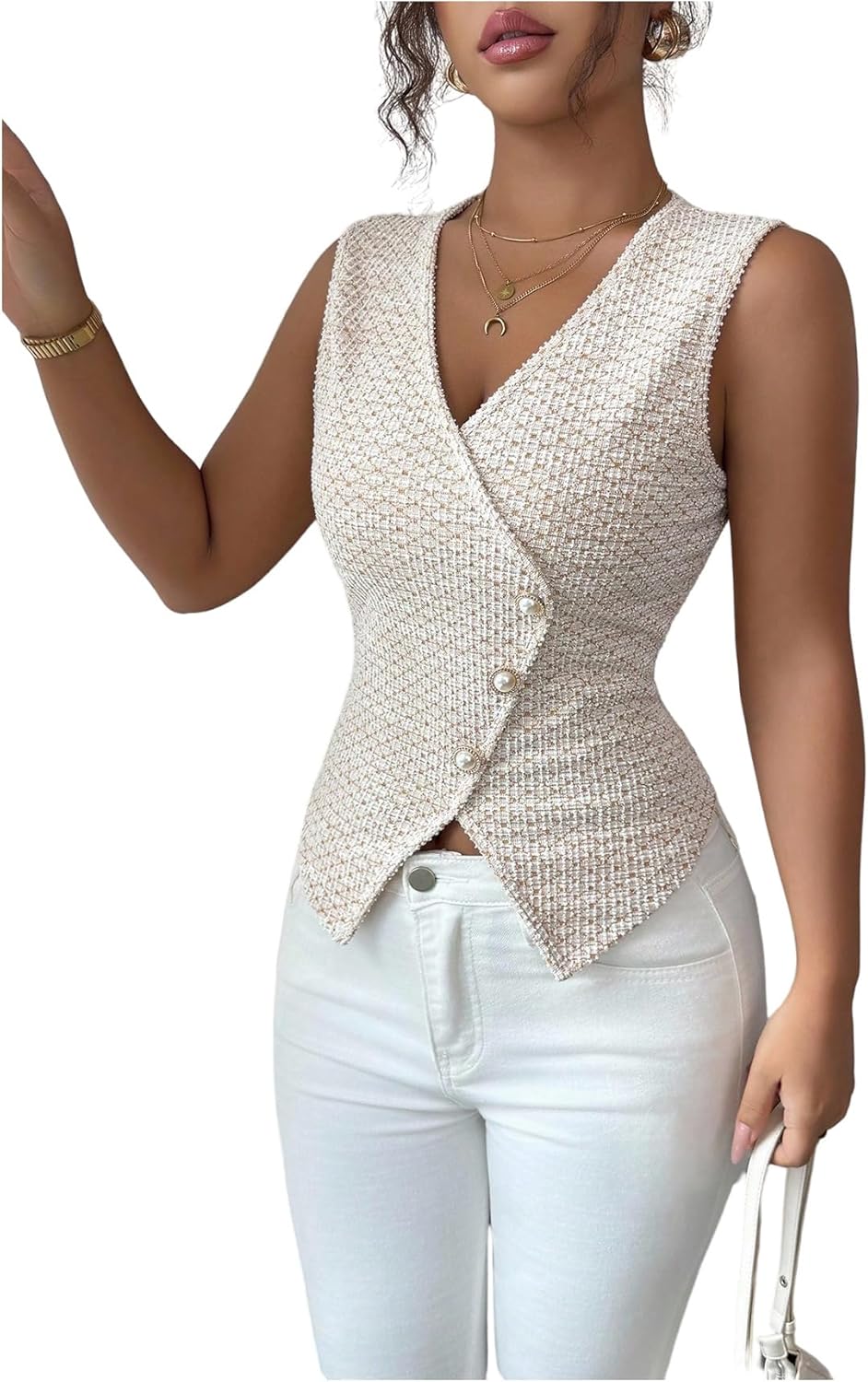 MakeMeChic Women's Sleeveless Wrap V Neck Vest Button Down Business Casual Tank Tops