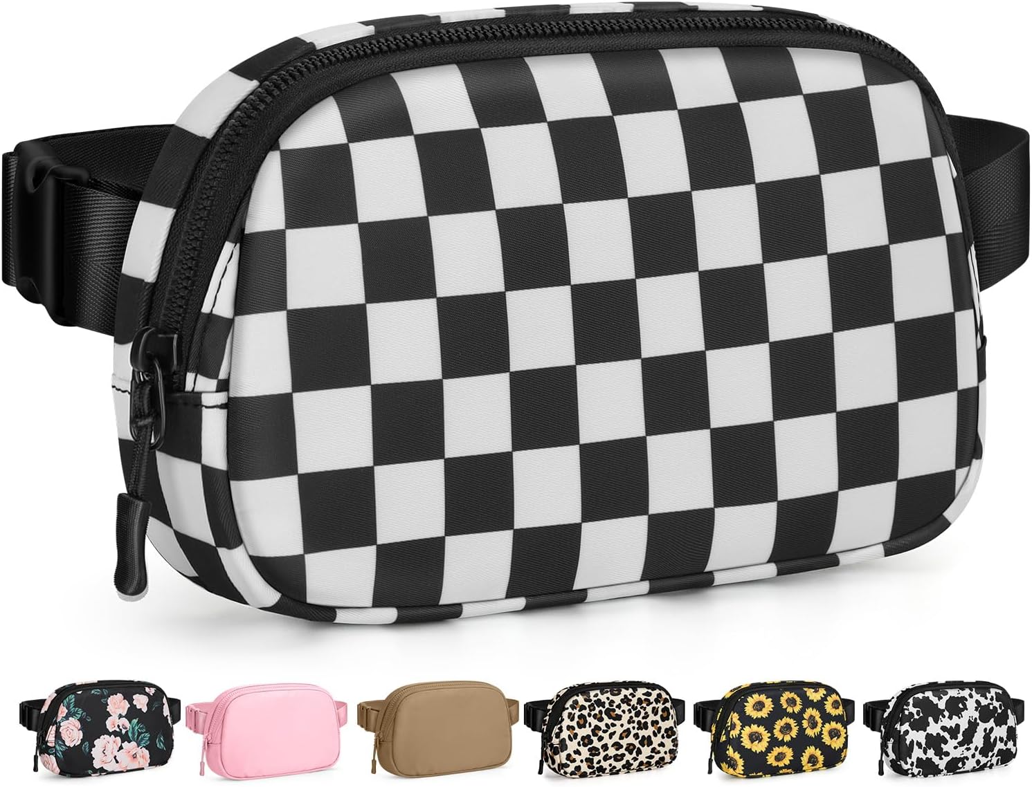 Fanny Packs for Women Cross Body Bag Waterproof Belt Bag with Adjustable Strap and Zipper Back Pocket Small Crossbody Bags Fashion Waist Packs for Workout Travelling(Checkered Black)