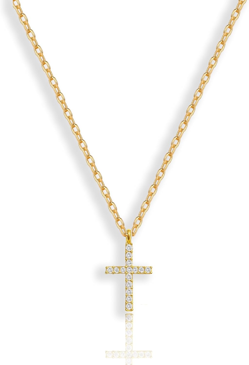 Altitude Boutique Cubic Zirconia Cross Necklace | Dainty Cz Bezel Cross Pendant with Adjustable Chain | 14K Gold-Plated or Rhodium-Plated Brass | Minimalist Religious Cross Faith Pendant Necklace for Women