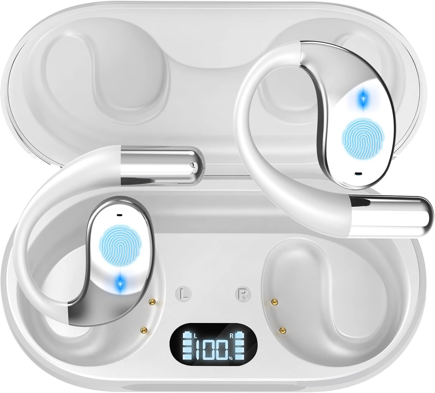 - Ultra-Comfort with Open-Ear Headphones: Lightweight and durable, each earbud weighs just 8g and features an ergonomic open-ear design with soft silicone hooks. The IPX6 waterproof rating makes them perfect for workouts, sports, or daily use, while keeping you aware of your surroundings.