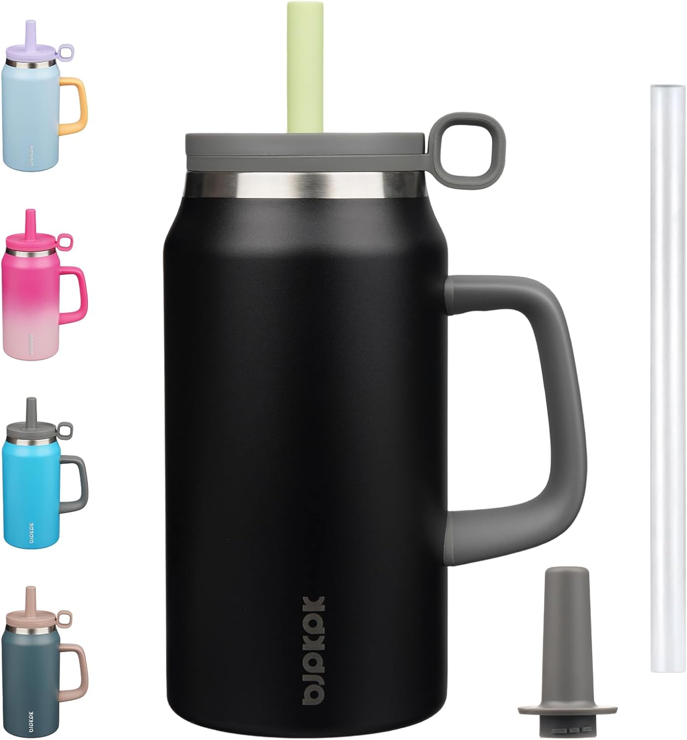 BJPKPK 50oz Insulated Tumbler with Handle Stainless Steel Travel Coffee Mug with Lid Reusable Large Water Bottle with Straw,Black