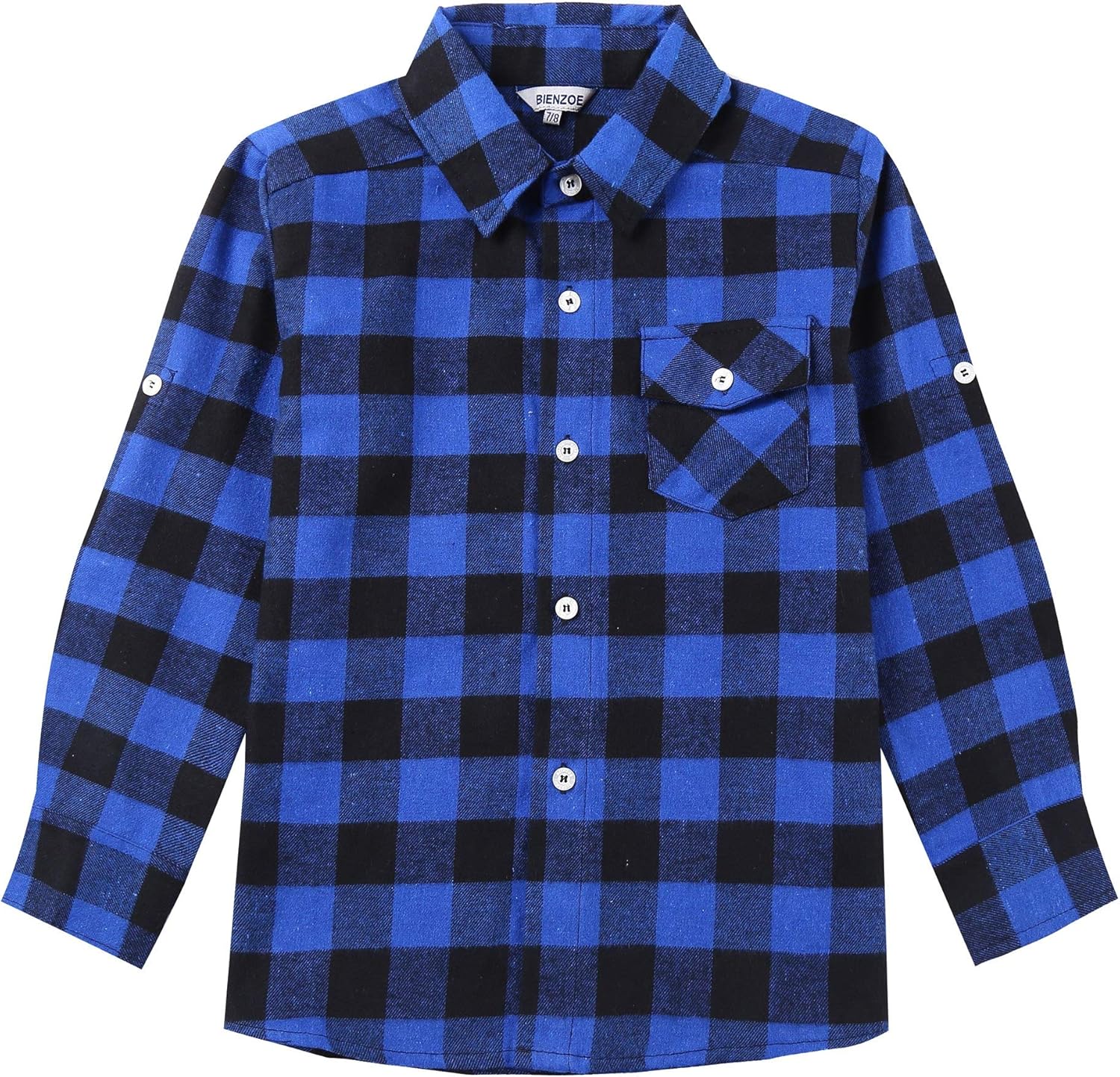 Bienzoe Boys Flannel Plaid Shirt: Long Sleeve Button Down - Casual for Fall Spring - Comfort for School Outdoor Family Events