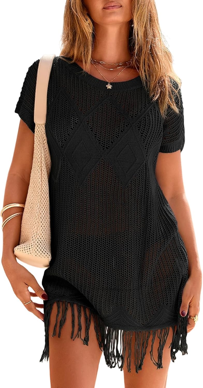 Dokotoo Swimsuit Cover Up for Women 2026 Crochet Bathing Suit Coverups Hollow Out Knit Tassel Beach Dress for Vacation