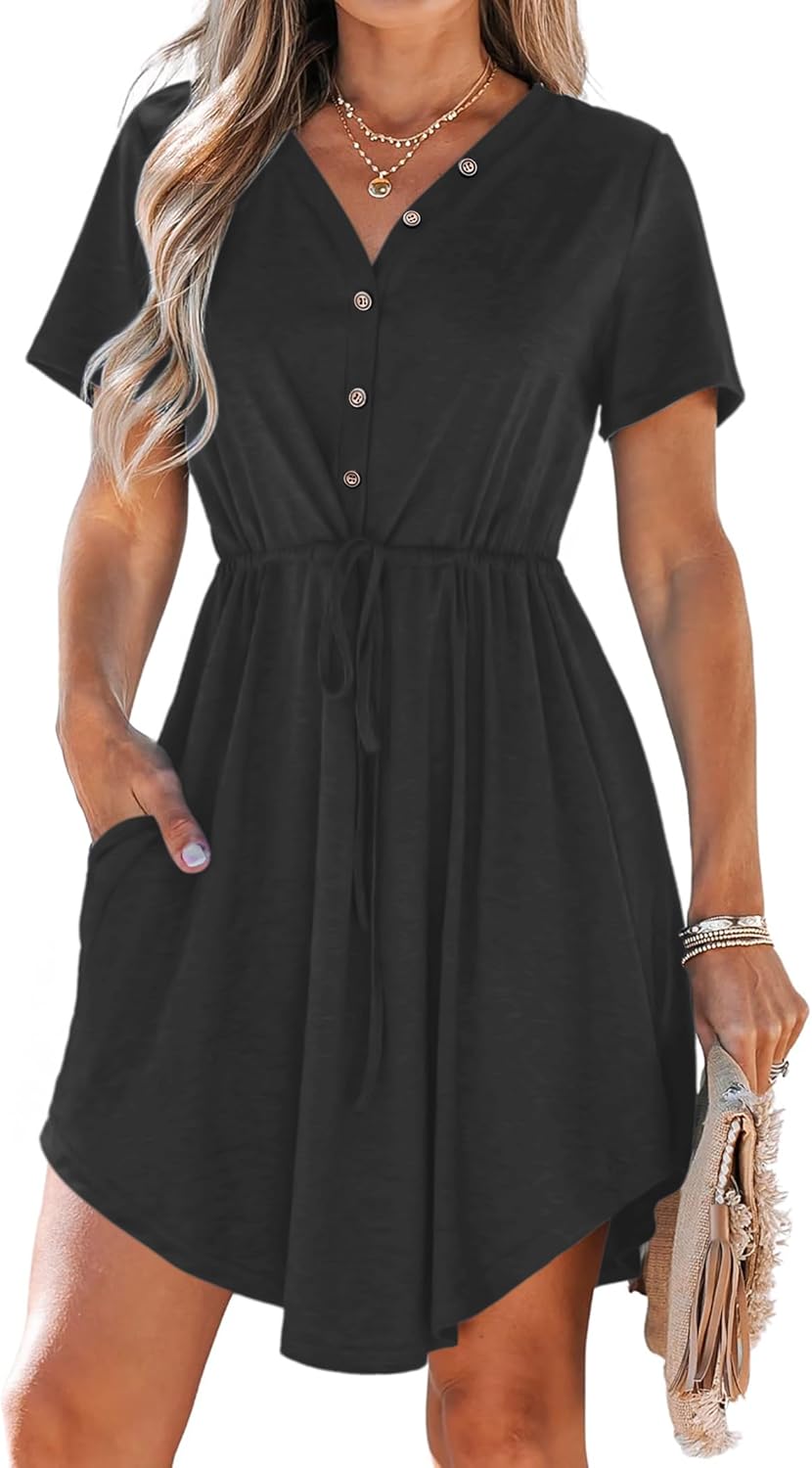 MISFAY Women Summer Dress Casual V Neck Short Sleeve Drawstring 2026 Mini Dresses with Pockets