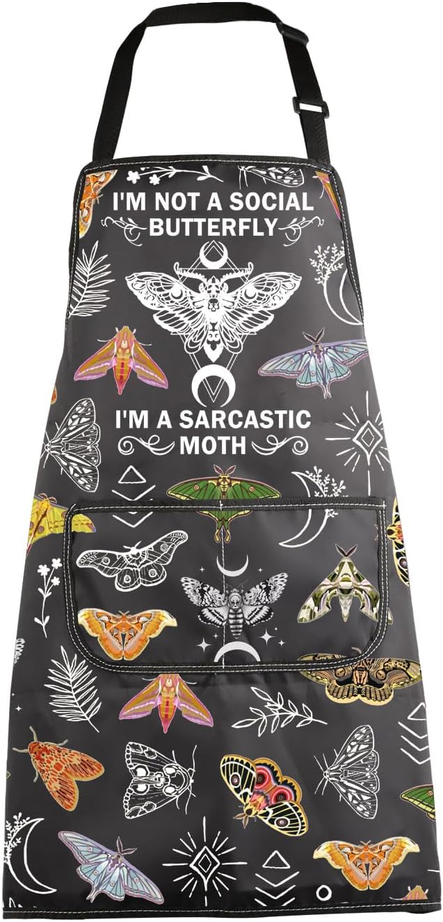 MBMSO Death Head Moth Apron Celestial Gifts for Moth Lovers I'm Not a Social Butterfly Goblincore Gifts Mystical Witchy Apron