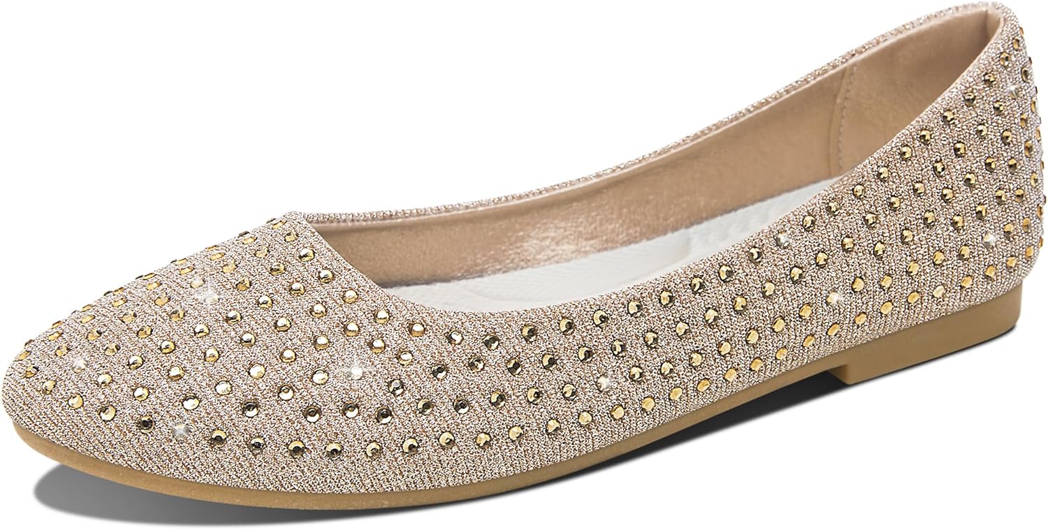 Jeekopeg Women Rhinestone Ballet Flats Sparkly Classic Round Toe Flats Comfortable Slip on Ballerina Flats Elegant Wedding Party Dress Shoes for Lady