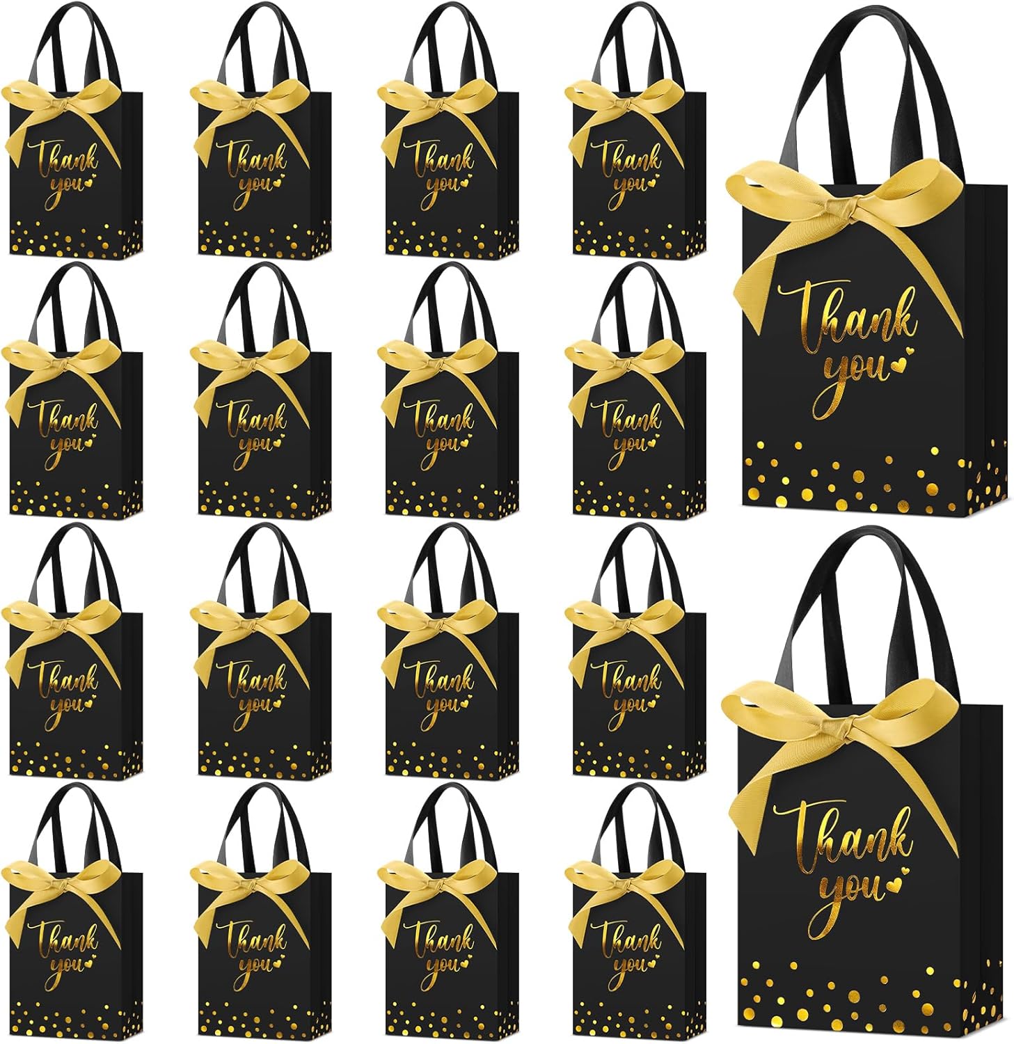 - Small Gift Bag Bulk: you will receive 36 black thank you gift bags with handles and 36 gold ribbons, sufficient quantity to meet your various needs for party favors, gift wrapping, etc., and you can also share these party favor bags with friends and family
