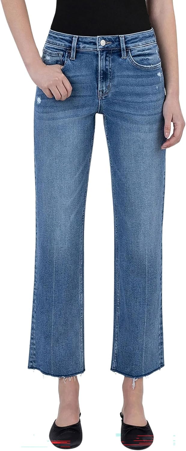 Women's High Rise Raw Hem Ankle Straight Jeans