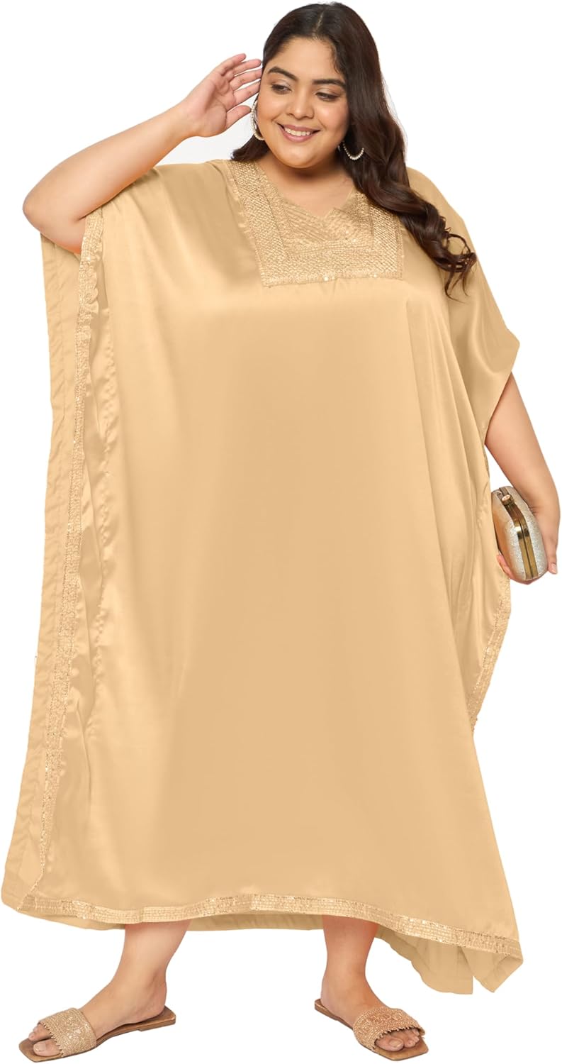 Gypsie Blu Women’s Plus Size Satin Sequin Kaftan Dress with Kimono Sleeves Casual Resort Wear Stylish Loose Fit Evening Dress