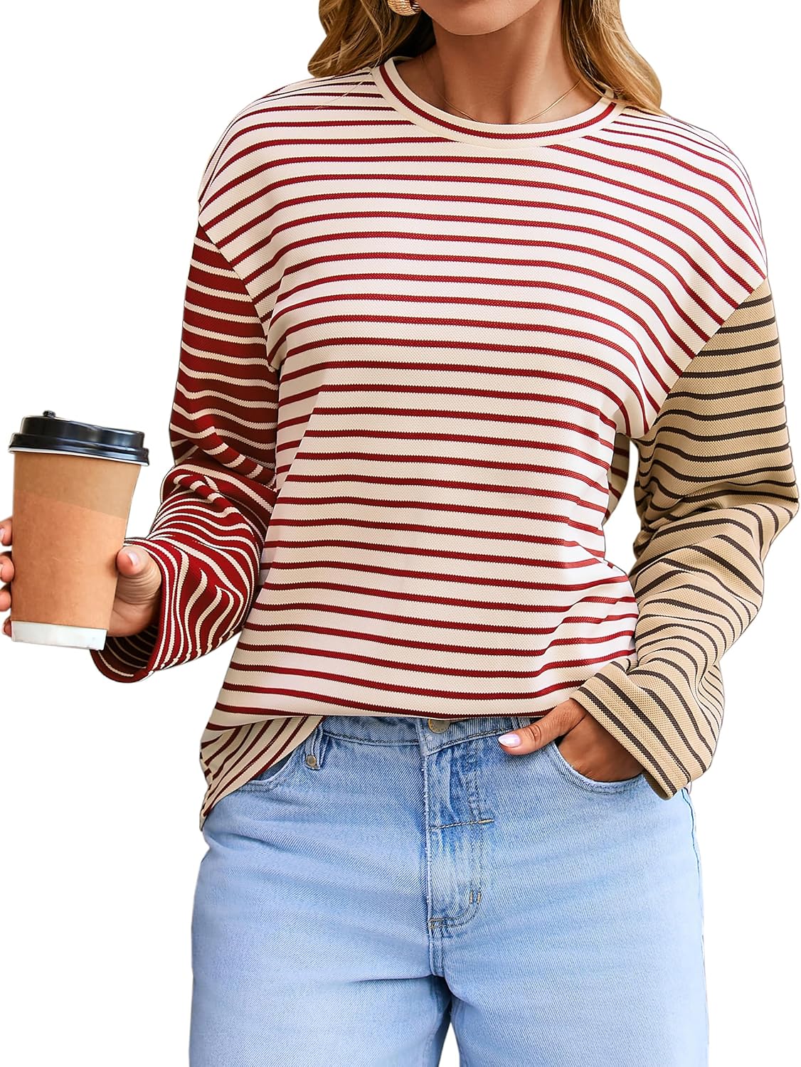 Glamaker Womens Striped Crewneck Sweatshirt Casual Color Block Top Long Sleeve Shirts Pullover Fall Outfits