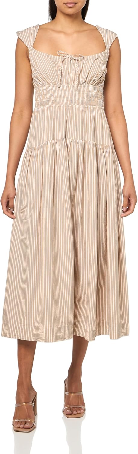 Lucky Brand Womens Cinched Waist Poplin Midi Dress