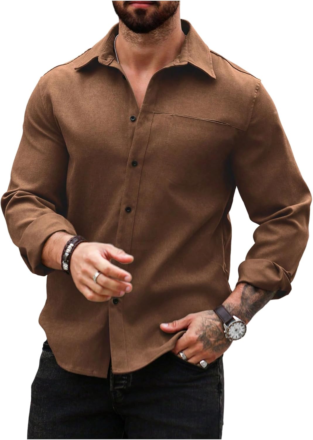 Milumia Men's Corduroy Button Down Shirt Western Long Sleeve Collared Casual Work Shirt Jackets